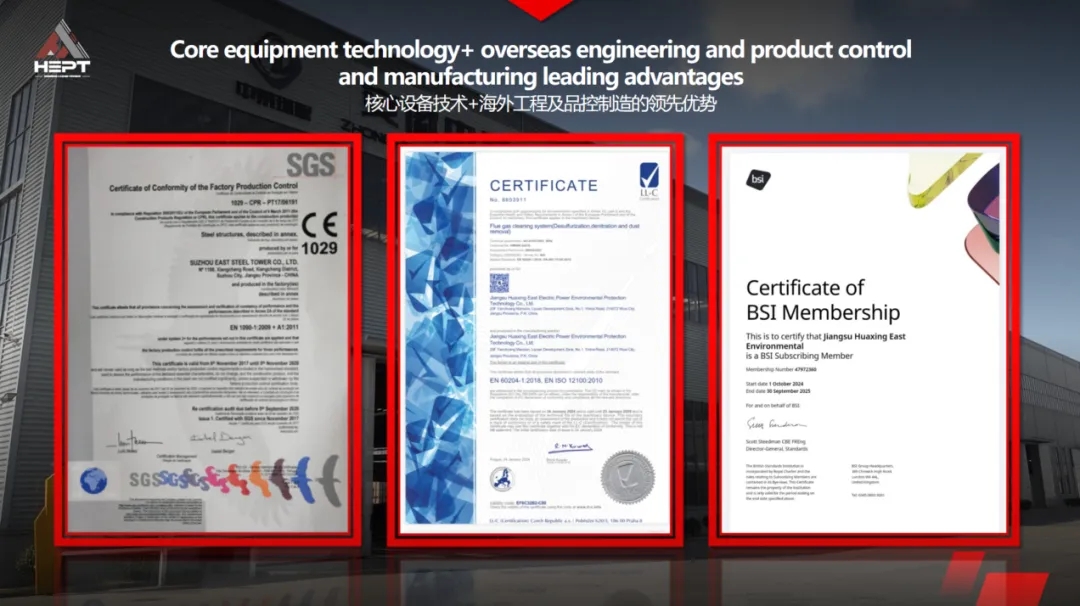 To be qualified for EU product system with EU-standard certifications, HEPT has made substantial investments since 2019, successively acquiring land in Langxi, Wuxi, and other locations to construct new standard factory buildings according to EU and Japanese manufacturing quality standards. HEPT has also built comprehensive systems compliant with EU export standards, including photovoltaic power generation with certified low carbon iniciative on rooftop of factory building, welder team qualification assessment, various qualified EU certifications for quality standard &manufacturing standard, steadily establishing a strategic bridgehead through the references with GEA's in the EU.