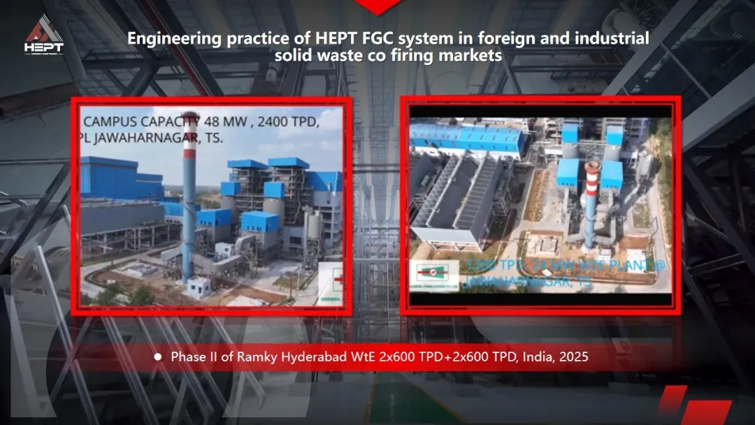 2017 Phase I MSW Incineration Power Generation Plant in Hyderabad, India: following the Jindal’s project where HEPT supplied core equipment, this project marked HEPT's first complete FGC system supply as well as performance guarantee for WtE incineration in South Asia. By introducing HEPT's advanced FGC system technology and core environmental protection equipment of rotary spray drying, the project achieved waste "reduction, harmlessness and resource utilization," providing stable and reliable green electricity for the city of Hyderabad and significantly improving local environmental quality.